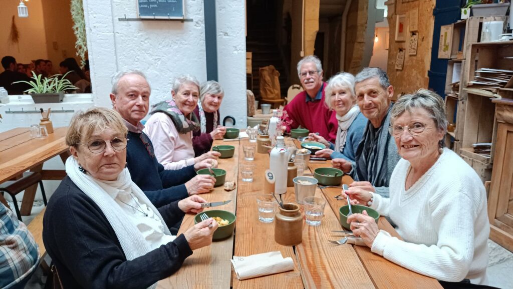 La sortie s’est ensuite prolongée autour d’un repas au restaurant “Les Récoltants”, dans le quartier saint Paul du vieux Bordeaux, où huit membres de l’association se sont retrouvés dans une ambiance détendue et chaleureuse.